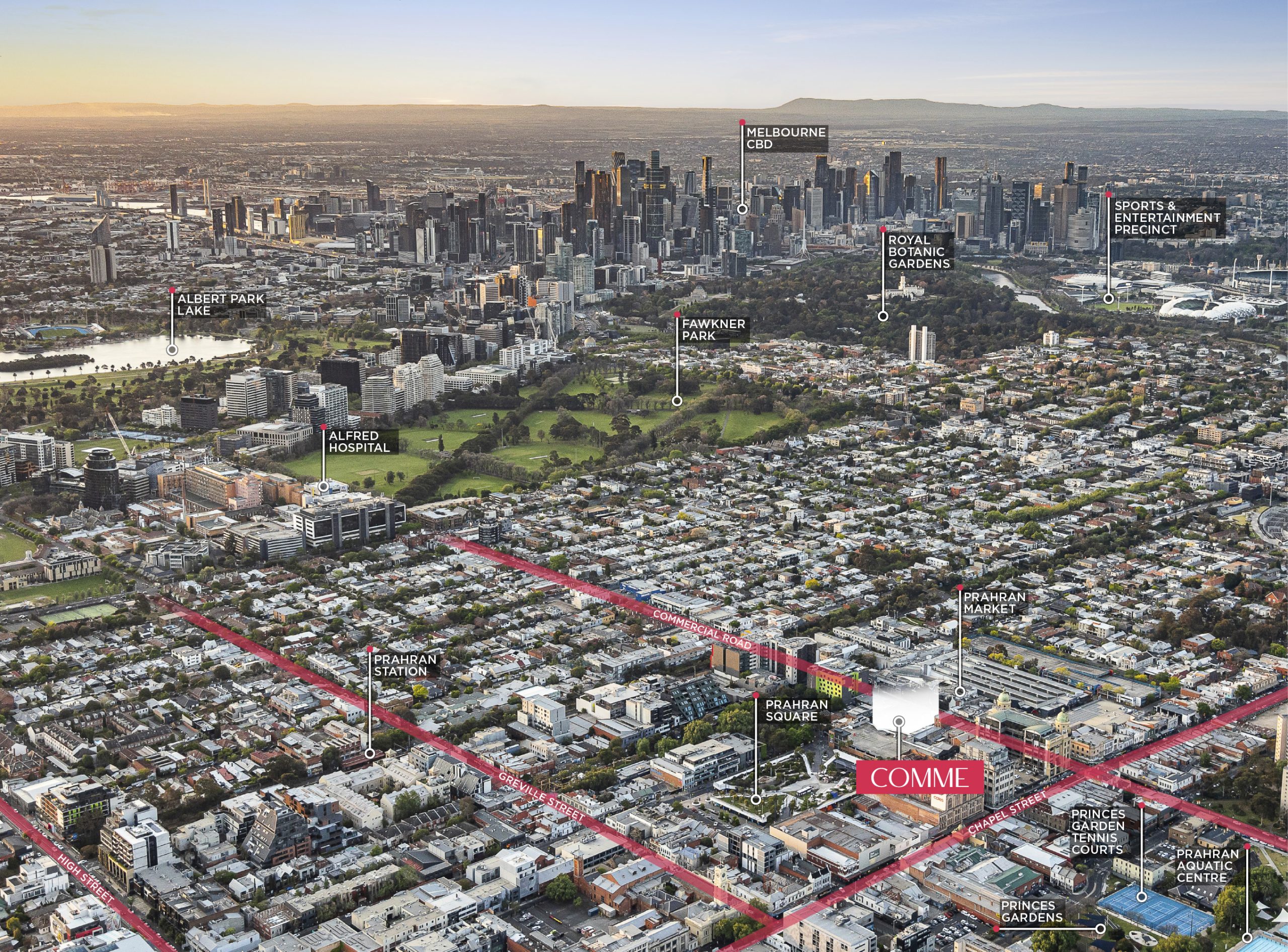 Here, you’re within walking distance of Prahran’s nest, and a tram, train or bike ride to everywhere else. Whatever your plans, Comme is a convenient place to start.